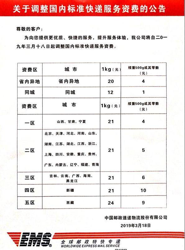 根据中国邮政速递物流股份有限公司调整资费的公告,经我中心和邮政快递公司协商,从4月8日起,凡需要邮寄资格证书的考生按照新的邮递资费标准支付。具体支付标准如下: