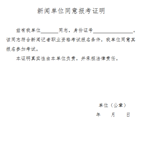 凡符合《国家新闻出版署人力资源社会保障部关于印发〈新闻记者职业资格考试办法〉和〈新闻记者职业资格考试实施细则〉的通知》(国新出发〔2022〕21号)规定报考条件(见附件1)的人员,均可报名参加新闻记者职业资格考试。报考时,报考人员须上传所在新闻单位同意其报考的《新闻单位同意报考证明》(见附件2)。