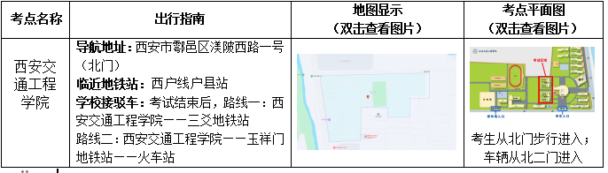 建议应试人员在考试前一天实地察看考点考场,熟悉考点示意图、周边环境、乘车路线及指示标识。考试当天根据自身实际合理选择交通方式,安排足够的出行时间,避免参加考试时走错考点、进错考场,避免延误考试。各考点导航地址及交通路线指示详见附件内容。