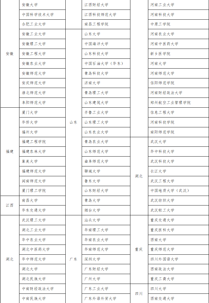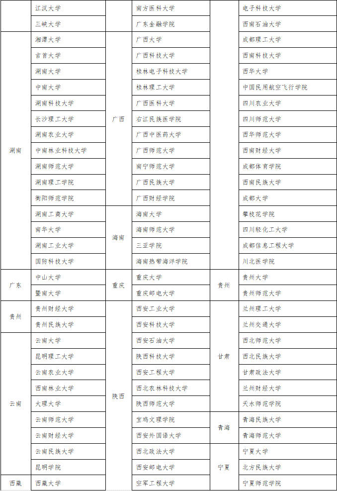 2.解放军外国语学院(所在地为洛阳)已与原信息工程大学(所在地为郑州)合并,本表与研招网保持一致采用信息工程大学的名称。解放军国际关系学院(所在地为南京)已与原国防科学技术大学(所在地为长沙)合并,本表与研招网保持一致采用国防科技大学的名称。