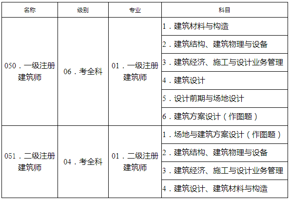 3.全国一、二级注册建筑师资格考试名称、级别、专业及考试科目信息